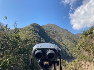 レーザー計測システムは、双眼鏡型のレーザー距離計で鳥の飛翔位置を3次元座標(緯度、経度、高度)として記録するシステムです。